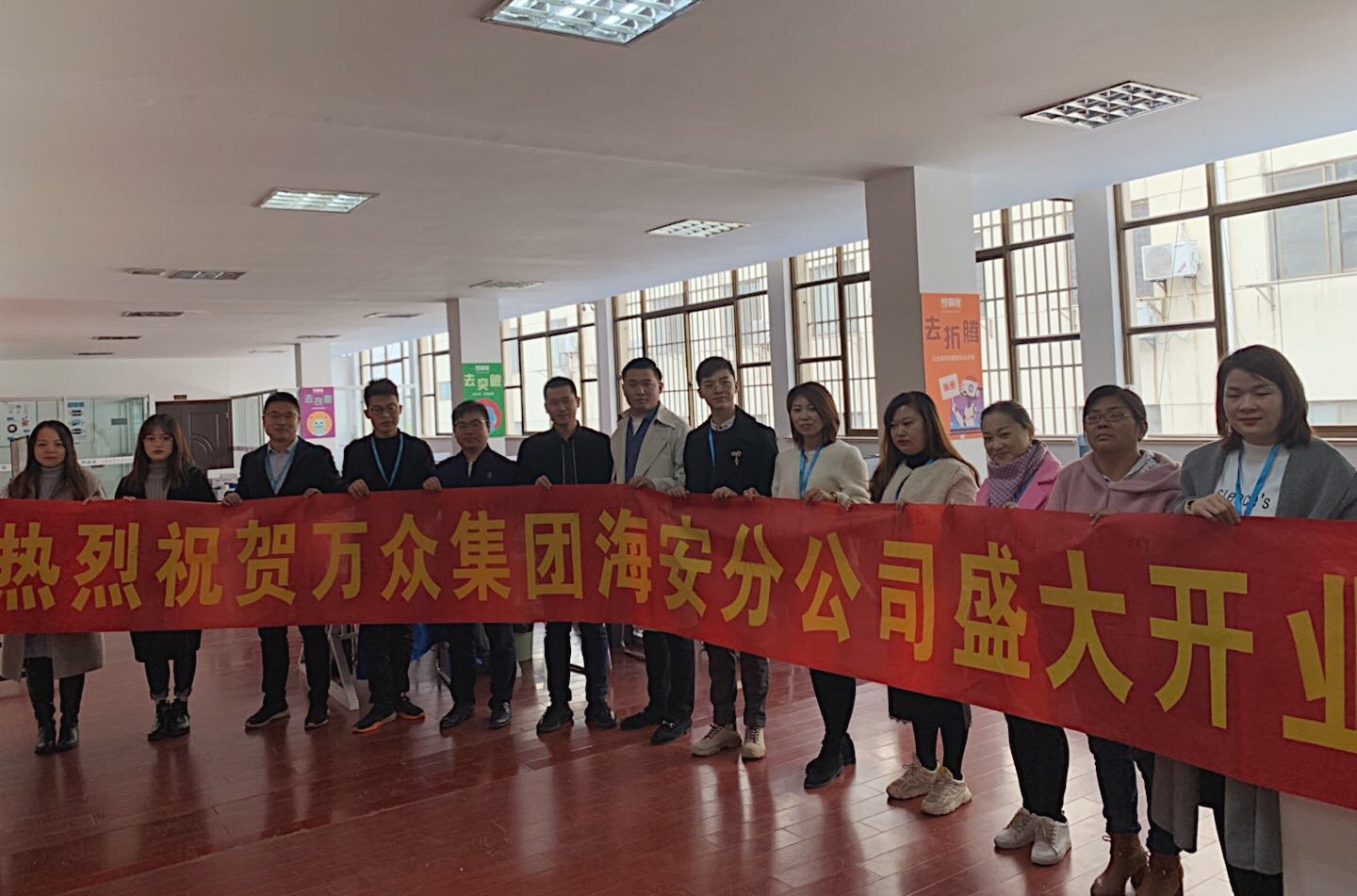 2019年11月18日,萬眾集團(tuán)海安分公司在海安市長江西路33號程豐大廈4樓隆重開業(yè)。董事長孫順星先生,南通總監(jiān)吳澤南先生以及海安總監(jiān)徐如城先生與當(dāng)?shù)氐男聠T工們歡聚一堂,共同見證這激動人心的時刻,標(biāo)志著南通萬眾在2019年集團(tuán)戰(zhàn)略部署中進(jìn)一步完成!