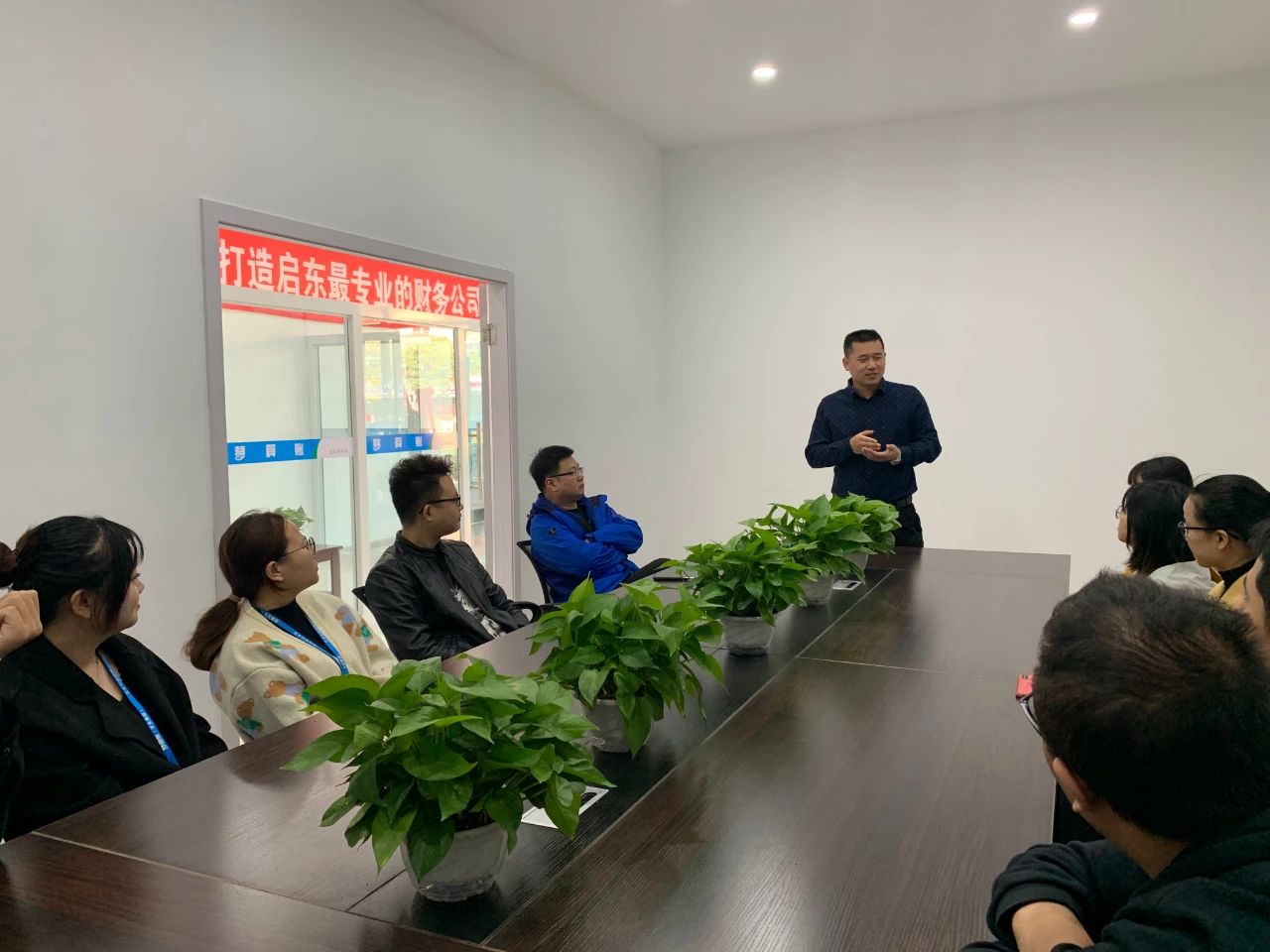 慧算賬渠道部總經(jīng)理陳琳、華東大區(qū)總監(jiān)程英干代表慧算賬對(duì)啟東分公司送上了衷心的祝福,