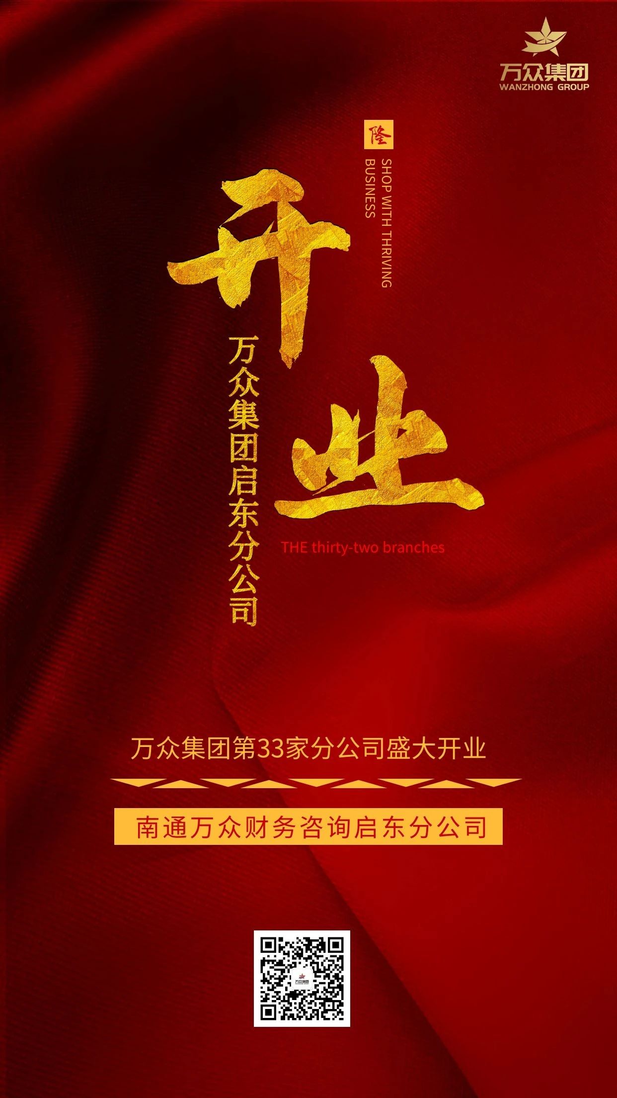 萬眾資訊2020年11月19日10點(diǎn)18分,南通萬眾財(cái)務(wù)咨詢有限公司——啟東分公司正式剪彩開業(yè),這是萬眾集團(tuán)的第33家分公司,為萬眾集團(tuán)的發(fā)展注入了新生力量。